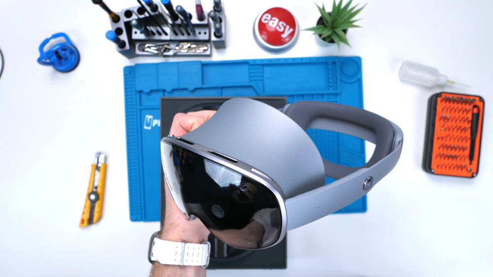 ابتدا هدست را از جعبه خارج می کنید و ماژول باتری خارجی را که حدود ۳۰۵ گرم وزن دارد، به درگاه مخصوص روی هدبند متصل می کنید. طراحی اتصال به صورت «کلیک» است؛ یعنی زمانی که باتری درست در جای خود قرار بگیرد، با یک قفل نرم و مطمئن در مدار قرار می گیرد و هدست آمادهی روشن شدن می شود.