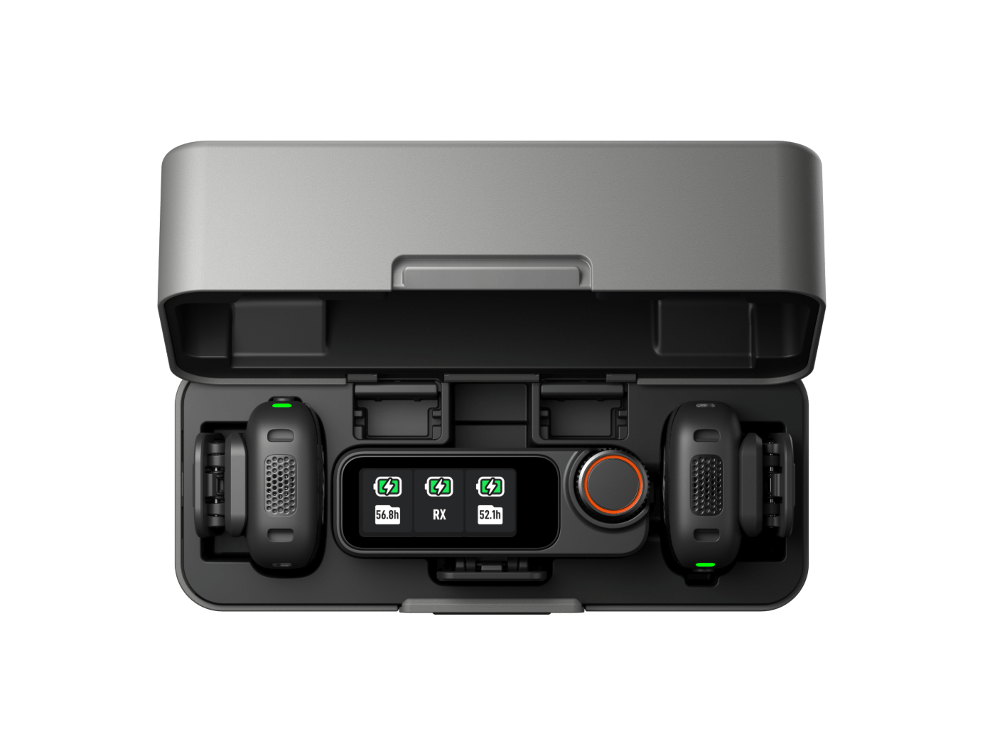 گیرنده دارای نمایشگر لمسی AMOLED 1.1 اینچی و کلید چرخان است؛ بنابراین تنظیم گین، حالتها، وضعیت باتری و سایر پارامترها بهسرعت قابل تغییر است. از طریق برنامه DJI Mimo روی گوشی، میتوانید تنظیمات دقیق، فریمور بهروزرسانی و کنترل هوشمند را انجام دهید، بدون نیاز به رایانه.