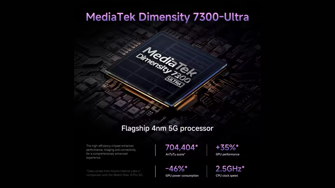 در قلب این گوشی، تراشهی Mediatek Dimensity 7300 Pro (4 نانومتری) قرار دارد. این چیپ در تستهای AnTuTu v10 حدود ۶۲۰ هزار امتیاز کسب کرده که در میان میانردهها عملکردی ممتاز به حساب میآید.