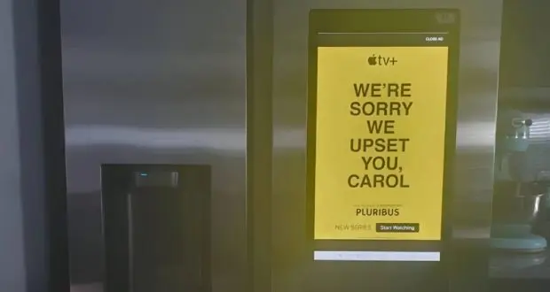 در یکی از عجیب ترین و نگران کننده ترین رویدادهای دنیای فناوری های خانگی، پخش تبلیغ سریال جدید علمی تخیلی Pluribus از سرویس Apple TV+ روی نمایشگر یک یخچال هوشمند سامسونگ Family Hub باعث حمله عصبی و بستری شدن زنی به نام کارول در بیمارستان شد؛ حادثهای که حالا در فضای مجازی به نمادی از خطرات تبلیغات هدفمند در دستگاه های هوشمند بدل شده است.