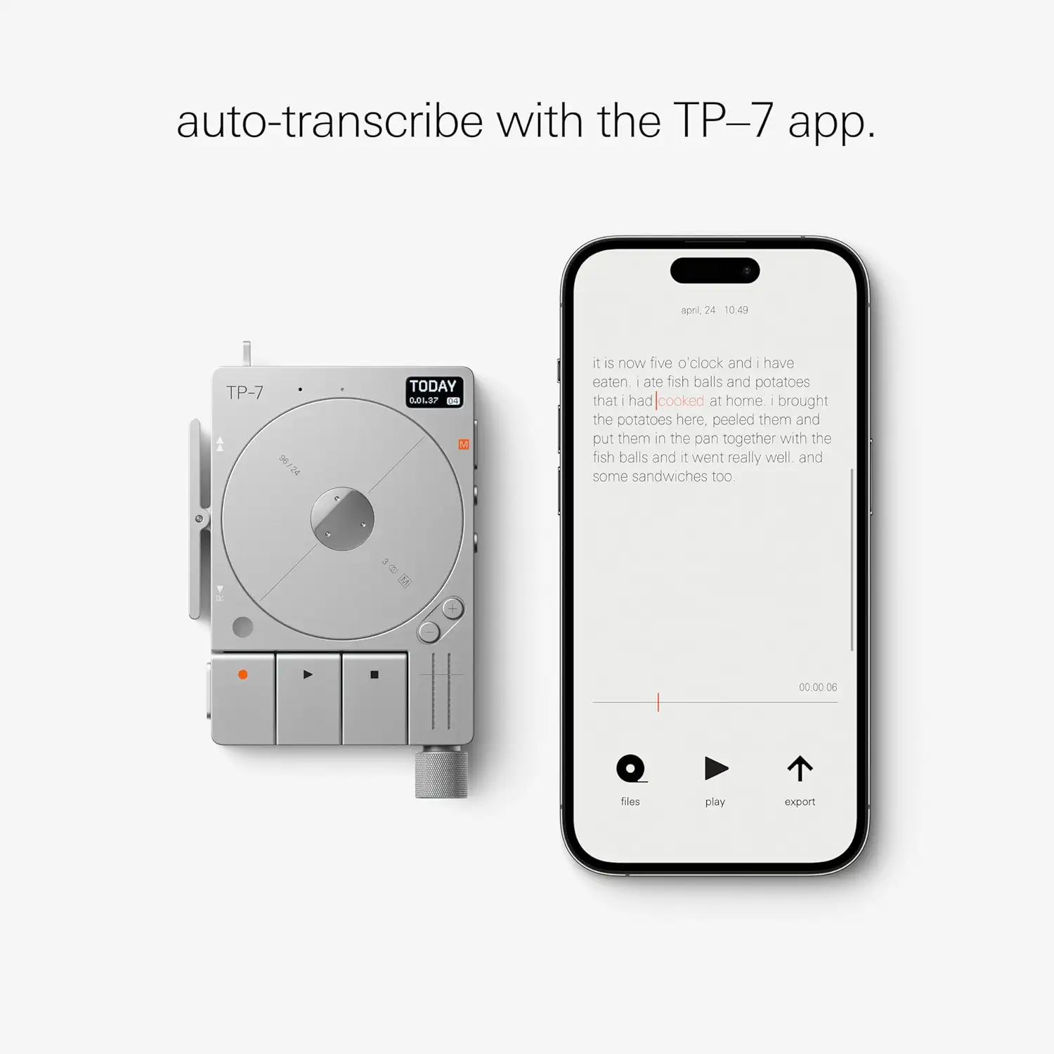 اپلیکیشن همراه TP‑7، عمل Transcribe را در اکثر زبانها پشتیبانی میکند. کافیست زبان انتخاب شود و متن، مستقیماً از دل صدا بیرون بیاید. این یعنی دستگاه شما یک «چندزبانه جیبی» هم هست.