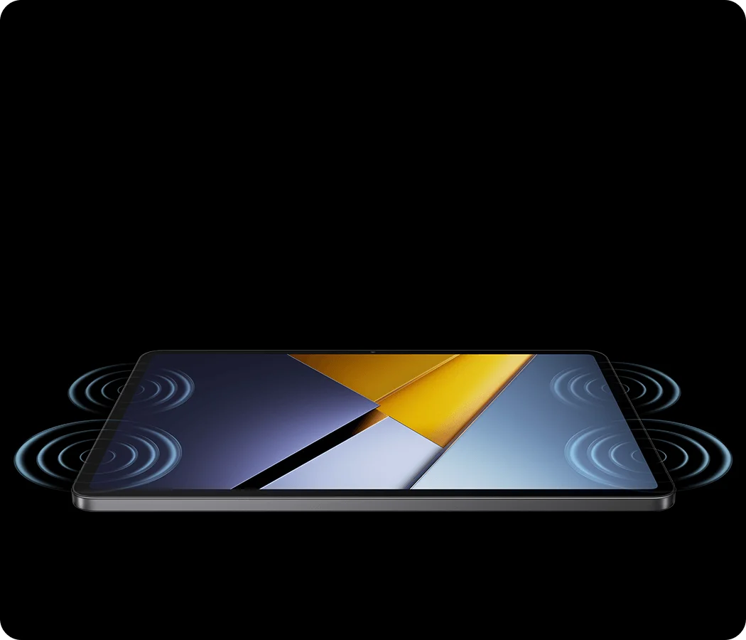 چهار اسپیکر استریوی شیائومی Poco Pad X1 با پشتیبانی از Dolby Atmos و Hi-Res Audio صدایی فوقالعاده شفاف تولید میکنند. کاربران خارجی در بررسیهای اولیه اشاره کردهاند که حجم صدا نسبت به Poco Pad نسل قبلی حدود ۲۵ درصد افزایش داشته و بیس دستگاه کاملاً کنترلشده است.
